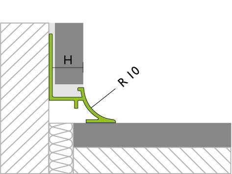 - PROCOVEsingle für harmonische Übergänge und Belagsabschlüsse von gefliesten Wandflächen zu Küchenarbeitsplatten oder auch Teppichen und Designböden.